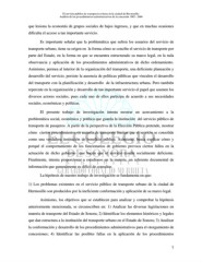 El servicio público de transporte urbano de la ciudad de Hermosillo: Análisis de los procedimientos administrativos de la concesión 1982 - 2004 que lesiona la economía de grupos sociales de bajos ingresos, y que en muchas ocasiones dificulta el acceso a tan importante servicio. Es importante señalar que la problemática que sufren los usuarios del servicio de transporte urbano, tiene su origen en la forma cómo se concibe el servicio de transporte por parte del Estado, en la forma en que se encuentra estructurado su marco legal, en la nula observancia y aplicación de los procedimientos administrativos de dicho ordenamiento. Asimismo, permea al interior de la organización del transporte, una deficiente planeación y desarrollo del servicio, persiste la ausencia de políticas públicas que vinculen el desarrollo del transporte con la planificación y desarrollo de la infraestructura urbana. Pero también repercute en la organización y desarrollo de tan importante servicio el papel que asumen los diversos actores sociales, pues cada uno de ellos participa de acuerdo a sus necesidades sociales, económicas y políticas. El presente trabajo de investigación intenta mostrar un acercamiento a la problemática social, económica y política que guarda la institución del servicio público de transporte de pasajeros. A partir de la perspectiva de la Elección Pública pretende, mostrar cómo ciertos procedimientos en materia de transporte limitan que el servicio se consolide como una verdadera institución de beneficio público. Asimismo, busca explicar cómo y porqué el comportamiento de los funcionarios de gobierno provoca ciertos fallos en la actuación de dicho gobierno que hacen que el servicio resulte socialmente deficiente. Finalmente, intenta proporcionar a estudiosos en la materia, un referente documental de información que generalmente es difícil de consultar. La hipótesis de nuestro trabajo de investigación se fundamenta en que: 1) Los problemas existentes en el servicio público de transporte urbano de la ciudad de Hermosillo son producidos por la ineficiente conformación y aplicación de su marco legal. Asimismo, los objetivos que se establecen para analizar y comprobar la hipótesis anteriormente mencionada, se circunscriben en: 1) Analizar las diversas legislaciones en materia de transporte del Estado de Sonora; 2) Identificar los elementos históricos y legales que dan estructura a la institución del transporte urbano en el Estado de Sonora; 3) Analizar la conformación y desarrollo de los procedimientos administrativos para el otorgamiento de concesiones; 4) Identificar las posibles fallas en la aplicación de los procedimientos 7