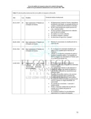 El servicio público de transporte urbano de la ciudad de Hermosillo: Análisis de los procedimientos administrativos de la concesión 1982 - 2004 Tabla 2. Evolución jurídica-institucional del servicio público de transporte en Hermosillo. Año Ley Nombre Evolución Jurídico-Institucional. 29-12-1937 25 Que reglamenta el Tránsito en El Departamento Central de Tránsito, dependiente el Estado de Sonora. del Ejecutivo del Estado, se encargaba de llevar el control y centralización del tránsito de vehículos. El DCT tenía facultad para expedir permisos de ruta, y autorizar tarifas. Se hace la primera clasificación de los vehículos que circulan en la entidad. Se establece la revisión vehicular. Se realizan exámenes a choferes. Se determinan el lugar de las “paradas”. 29-07-1939 176 Que reglamenta el Tránsito en Reforma lo concerniente a la clasificación de los el Estado de Sonora. carros de sitio. 25-01-1941 236 Que reglamenta el Tránsito en Se le otorgan a los municipios facultades para el Estado de Sonora. aplicar la ley y pueden ejercer funciones de vigilancia. Además, no se especifica claramente de quién es facultad el transporte público. Las facultades de DCT se asignan a las Autoridades de Tránsito, pero no se especifican quienes son. 14-03-1951 86 Reglamento a que deberá Se enuncia por vez primera el concepto de sujetarse el Servicio de concesión al referirse a los automóviles destinados Automóviles destinados al a servicio público. Servicio Público. Los ayuntamientos fijarán en cada municipio el número de vehículos que habrán de dedicarse a cada servicio, precisarán las características que habrán de llenar. Expedirán los permisos relativos a los servicios que habrán de prestarse bajo su jurisdicción, considerando las exigencias del interés público. Procurarán no volver incosteable la prestación del servicio a quienes lo vengan atendiendo con anterioridad. Se controlan las concesiones. 1 concesión 1 unidad-camión. Estado y municipio establecerán las tarifas de acuerdo con la opinión del gremio de concesionarios. Se consideran establecer los procedimientos administrativos en materia de transporte. 73
