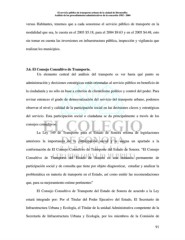 El servicio público de transporte urbano de la ciudad de Hermosillo: Análisis de los procedimientos administrativos de la concesión 1982 - 2004 versus Habitantes, tenemos que a cada sonorense el servicio público de transporte en la modalidad que sea, le cuesta en el 2003 $5.18, para el 2004 $9.63 y en el 2005 $4.48, esto sin tomar en cuenta las inversiones en infraestructura pública, inspección y vigilancia que realizan los municipios. 3.6. El Consejo Consultivo de Transporte. Un elemento central del análisis del transporte es ver hasta qué punto su administración y decisiones estratégicas están orientadas al servicio público en beneficio de la ciudadanía y no sólo en base a criterios de clientelismo político y control del poder. Para revisar entonces el grado de democratización del servicio del transporte urbano, podemos observar el nivel y calidad de la participación social en las decisiones claves y estratégicas del servicio. Esta participación social o ciudadana se da principalmente a través de los consejos consultivos. La Ley 149 de Transporte para el Estado de Sonora retoma de legislaciones anteriores la importancia de la participación social y le asigna un apartado a la conformación de El Consejo Consultivo de Transporte del Estado de Sonora. “El Consejo Consultivo de Transporte del Estado de Sonora es una instancia permanente de participación social y de consulta que tiene por objeto diagnosticar, estudiar y analizar la problemática en materia de transporte en el Estado, así como emitir las recomendaciones que, para su mejoramiento estime pertinentes” El Consejo Consultivo de Transporte del Estado de Sonora de acuerdo a la Ley estará integrado por: Por el Titular del Poder Ejecutivo del Estado, El Secretario de Infraestructura Urbana y Ecología, el Titular de la unidad Administrativa competente de la Secretaría de Infraestructura Urbana y Ecología, por los miembros de la Comisión de 91