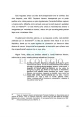 Esta respuesta ofrece una idea de la exasperación ante el conflicto. Dos años después, para 1852, Cayetano Navarro, desesperado por no poder pacificar a los indios propone un plan al gobernador Fernando Cubillas: capturar a mujeres seris, utilizarlas como carnada para que los seris que aún quedaban vivos se rindieran 245 . En esta misma carta señala la necesidad de obreros e inmigrantes que necesitaba el Estado y hacía ver que los seris jamás podrían llegar a ser ciudadanos útiles. El gobernador vislumbra además, en su respuesta a dicha carta también publicada por El Sonorense 246 , la idea de deportar Seris hacia el sur de la República, donde por no poder regresar se convertirían por fuerza en útiles obreros de campo. Ninguna de las propuestas se concretizó, pero ofrecen una rica perspectiva de lo que se vive en esos años. Miguel Tinker, relata una anécdota citando a Tomás Robinson Warren, sobrino de un cónsul estadounidense radicado en Guaymas: Durante una noche caliente en Guaymas en la que la gente dormía en las aceras, lo cual se acostumbraba durante tiempos de calor, él y algunos de sus amigos “juntaron varias mulas” y después de varios gritos las soltaron por las calles de Guaymas. La gente que dormía en las aceras, al despertarse, pensaron que estaban siendo atacados por indios. Según Warren, sus acciones causaron un tumulto como nunca se había visto antes, “gente gritando por la calle, mujeres caminando sin ropa y todo el mundo gritando indios, indios...mientras que los hombres le comenzaron a disparar a las pobres mulas” (p.47) 245 “Carta de Cayetano Navarro al Gobernador Fernando Cubillas” en Documentos para la Historia de Sonora Tomo 3. Colección Pesqueira. 18 de mayo de 1852 Sala del Noroeste, Biblioteca de la Unison. Hermosillo. Ver también, El Sonorense No.34, Ures. 4 de junio de 1852 246 El Sonorense 4 de junio de 1852 No. 34 110
