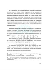 En el caso de Lola, ella es prototipo de belleza occidental, sin embargo, en la novela da un giro. Dolores empieza simpatizando con los seris y termina siendo uno de ellos. Siguiendo a Jean Franco, es a través de estos nuevos personajes, cuyos amores terminan en tragedia, que el autor de cada novela expresa un sentido de nacionalidad contrariado por factores exteriores; las protagonistas se identifican con los indígenas a la vez que son portavoces del autor en defensa de lo nacional contra lo extranjero; Cuando hay protagonistas masculinos, estos no son europeos. Como en las novelas de Enriquillo, El Zarco y Clemencia cuyos protagonistas son feos y oscuros, pero que demuestran tener nobles sentimientos. A principios del siglo XIX, el estereotipo de lo masculino 327 en la literatura mexicana se centra en el concepto de mestizaje. Aún cuando cuestiones raciales no se anulan de nuestra cultura, se asoma una identidad compartida que supone cierta integración racial, sin embargo, esa integración implica un status 328 . Para los años en que aparece El Zarco (1901), de Altamirano, el indígena se ve reivindicado pero sólo si acepta los valores que la nueva sociedad mexicana está construyendo y abandona los propios. En la época de Fernando Rojas, después de la publicación de Santa (1903), se empieza a identificar lo masculino con la barbarie. El indio es un hombre, fuerte, hermoso dentro de su fealdad. El concepto de masculinidad cambia, pero sigue cubierto con connotaciones raciales. 327 Para ampliar información sobre este tema ver Jornadas Universitarias sobre Masculinidad. Marzo de 2004. http://www.tucomunidad.unam.mx/Files%20HTML/L_casadelaspalabras.htm 328 Ver El periquillo Sarmiento de Fernández de Lizardi donde muchas veces, el mestizaje se muestra como producto de una violación que implica la superioridad del español con respecto al indígena. 175