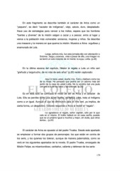 En este fragmento se describe también el carácter de Ariza como un “yaquero”, es decir “cazador de indígenas”, viejo, astuto, duro, despiadado. Hace uso de estrategias para vencer a los indios, espera que los hombres “fuertes y jóvenes” de la misión salgan a cazar y a pescar, entra al lugar y vence a la población más vulnerable: ancianos, mujeres y niños. Se describe una masacre y la manera en que quema la misión. Muestra a Ariza orgulloso y enamorado de Lola. -Larga, señora mía, fue esta jornada-dijo con afectación a Dolores-; larga y azarosa...más a pesar de ello, una imagen no se borró un solo instante de mi mente: la suya, Lolita. (p.23) En la última escena del capítulo, Néstor le regala a Lola un niño seri “greñudo y larguirucho, de no más de seis años” (p.20) recién capturado: -Aquí lo tiene usted, dueña mía. Fiero y bárbaro como los de su linaje. He pensado que podría ser un adorno más del jardín de la casa de usted Lolita. No le vendría mal una jaula cercana a la de los loros y las cotorras. (p.23) Es en esta acto se contrasta el modo de ser de Ariza y el carácter de Lola. Ella se percibe como una joven buena, caritativa, justa, trata al indígena como a un igual. Aunque el uso de diminutivo para el niño seri, ya implica, de cierta forma, un despectivo. Dolores responde a Ariza al recibir el “regalo”: -Le agradezco el regalo, señor capitán, sólo por lo que vale en sí mismo. El indito hallará en mi casa cariño, puesto que es un prójimo igual a muchos y mejor, sin duda, que otros tantos... (p.24) El carácter de Ariza es opuesto al del padre Trueba. Desde este apartado se empiezan a formar dos grupos de personajes: los que están en contra de los seris, y los quienes los toleran, aunque de manera paternalista, como se verá en los siguientes apartados de la novela. El padre Trueba, encargado de Misión Felipe, es misericordioso, caritativo, valiente y defensor de los seris: 179