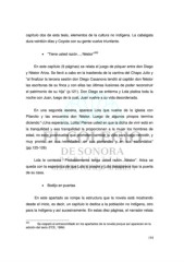 capítulo dos de esta tesis, elementos de la cultura no indígena. La cabalgata dura veintiún días y Coyote con su gente vuelve triunfante. • “Tiene usted razón..., Néstor” 333 En este capítulo (9 páginas) se relata el juego de póquer entre don Diego y Néstor Ariza. Se llevó a cabo en la trastienda de la cantina del Chapo Julio y “al finalizar la tercera sesión don Diego Casanova tendió al capitán don Néstor las escrituras de su finca y con ellas las últimas ilusiones de poder reconstruir el patrimonio de su hija” (p.121). Don Diego se enferma y Lola platica toda la noche con Juan, luego de la cual, Juan vuelve a su vida desordenada. En una segunda escena, aparece Lola que vuelve de la iglesia con Pilarcito y las encuentra don Néstor. Luego de algunos piropos termina diciendo:”-¡Una esperanza, Lolita! Piense usted en que la dicha de vivir está en la tranquilidad y esa tranquilidad la proporcionan a la mujer los hombres de edad, no esos jovenzuelos que prometen cambiar la vida para luego reincidir, y muy pronto, en sus veleidades, en sus parrandas y en sus escándalos” (pp.125-126) Lola le contesta “-Probablemente tenga usted razón...Néstor”. Ariza se queda con la esperanza de que Lola lo acepte y Lola desaparece tras la puerta de su casa. • Bodijo en puertas En este apartado se rompe la estructura que la novela está mostrando desde el inicio, es decir, un capítulo lo dedica a la población no indígena, otro para la indígena y así sucesivamente. En estas diez páginas, el narrador relata 333 Se respetó el entrecomillado en los apartados de la novela porque así aparecen en la edición del texto (FCE, 1984) 191