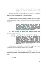 bárbaros he hallado la felicidad...¡Anda Indalecio, vuela y entrega a Juan Vega este mensaje para todos los yoris! (p.205) El narrador aprovecha las palabras de Lola para criticar a la sociedad no indígena prácticas como el asesinato, el robo, la corrupción. Y queda pensando: “Es negro, bárbaro, silvestre...pero es mi dueño” (p.205). Las ancianas, luego de vestir a Lola con el atuendo seri, la bautizan como Iguana: Porque la iguana muda sus colores en tiempos de agua...porque la iguana tiene su carne blanca como la del yori...porque la iguana es mansa y no hace daño. Iguana serás, como serán tus hijos y los hijos de ellos, que, al caer de muchas lunas, se tornarán en bravos que mantengan limpio el camino que caminen los Kunkaaks (pp. 208-209) En la boda, Lola teme salir desnuda, pues tiene otro concepto de la desnudez, y el autor comenta: Sin darse a pensar que ante los ojos de todos aquella semidesnudez representaba la moral y la elegancia, en contraste con los pudibundos y chabacanos ropajes que encubrieran por años, la audaz trayectoria curvilínea, el milagro sonrosado de la carne y la armonía milagrosa del conjunto de excelencia que permanecieron siempre ocultas a las miradas torcidas por una ética mezquina y por el vicio del recato (p.209) Otra oportunidad para criticar a la sociedad no indígena, pero ahora cuestiona los valores: hay “miradas torcidas” ante la desnudez. Luego de un largo discurso nupcial, Lola y Coyote se suben a una piragua para ir, remando, hasta la isla donde pasarían sus primeros días como pareja. • La grieta 200