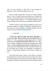 agua y con gran ceremonia la voltea sobre la testa amarillenta del catecúmeno.” (p.231) Luego del ritual celebran con sal y vino. Durante el festejo, Indalecio dice a Lola que ya lo habían nombrado guerrero. Lo que no le agrada a Iguana, pero acepta al ver el entusiasmo del muchacho. Aquí vale la pena señalar un párrafo donde Iguana le dice, en “tono seco” a Indalecio cuando le llama Lola: “- te he prohibido repetidas veces que me des ese nombre...Ella murió hace años, en el asalto de La Palmita” (p.231) Al finalizar el capítulo, le avisan a Iguana que Indalecio ha muerto y que lo encontraron colgado de un mezquite. Lo descubrieron haciéndose pasar por pima, gracias a su dominio del español, y entregando información a los seris. Lola llora su ausencia y piensa en el futuro de sus hijos. • Un plan criollo Consta de once páginas. Se relata cómo Iguana, aprovechando la ausencia de su marido, trama la manera de convivir en paz con los blancos. Escapa de la tribu y encuentra el camino donde contacta a algunos comerciantes donde intercambia unas perlas por mantas, hilos y cintas. Llega a la tribu y elabora un vestido que se pone ante el asombro de las demás mujeres. Convence a algunas de que se atavíen con otros vestidos que ella misma confecciona y las persuade de convencer a los varones de la tribu. Pero con ello consigue que los bandos entre “progresistas” (los seguidores de Coyote) y los conservadores (seguidores de Huevo Zaino) se separen aún más. Cuando llega Coyote reprime a Iguana y le llama traidora, sin embargo, ella argumenta que no lo hace por traición sino que los consiguió “Para volver a ser la Perla de Guaymas a los ojos de mi señor” (p.239) y asegura que “Jamás ha pasado por la cabeza de la mujer del jefe de los bravos tal torpeza...Iguana 203