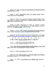 Ortega, N. S. (1993). Un ensayo de Historia Regional. El Noroeste de México 1530-1880. México: UNAM Pappe, S. (2001). Historiografía crítica. Una reflexión teórica. México: Universidad Autónoma Metropolitana. Pérez, H. P. (1991). “Los factores de conformación regional en México (1700- 1850): Modelos e hipótesis de investigación en Región e Historia en México (1700- 1850). México: Instituto Mora-UAM Quijada, M. (2002). “Repensando la frontera sur Argentina: concepto, contenido, continuidades y discontinuidades de una realidad espacial y étnica (s. XVIII y XIX)” en Revista de Indias, v. LXII, núm. 224. Quijada, C. (coord.), (1996). Crónica y microhistoria del noroeste de México. Sonora: Instituto Sonorense de cultura / Sociedad Sonorense de Historia. Quijada, M. “En torno al pensamiento racial en Hispanoamérica: una reflexión bibliográfica” http://www.tau.ac.il/eial/III_1/quijada.htm consultada en mayo de 2005. Ricoeur, P. (1995). Tiempo y narración. México: T. I. Siglo XXI. Reboul, O. (1986). Lenguaje e ideología. México: FCE Rocha, Gilda. Sonora un siglo de literatura: poesía, narrativa y teatro (1936- 1992). (1993) México. Ed. Consejo para la Cultura y las Artes. . Rojas, G. F. (1984). Lola Casanova. México: FCE Sahlins, M. (1997). Islas de historia. La muerte del capitán Cook. Metáfora, antropología e historia. (3ª. ed.). Barcelona: Gedisa. Searle, J. R. (1997). La construcción de la realidad social. Barcelona: Paidós Básica. 27