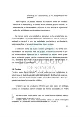 símbolo de paz y abundancia y, tal vez, de significación más profunda. 95 Para explicar un proceso histórico es necesario tomar en cuenta la historia de la formación y el cambio de los distintos grupos sociales, las relaciones que se dan entre ellos, así como la forma en que se organizan al realizar las actividades económicas para su sustento. La manera como una sociedad se estructura es la característica que permite identificar una región; observar las interrelaciones entre la región y la sociedad en general, o entre las sociedades que habitan y se disputan la región geográfica, y la relación que ambas tienen con ésta. Al entender cómo los grupos sociales participaron y la forma cómo trascendieron las relaciones entre los grupos, se observa la manera en que los acontecimientos repercuten en la comunidad: Un mismo hecho puede afectar a diversos grupos, pero las consecuencias serán diferentes para cada una, dependerá de la forma en que las sociedades están estructuradas, de 96 sus valores y de su cosmovisión . 2.2. Frontera 97 Frontera, según Bernd Schröter , es una región con una multiplicidad de relaciones y de conexiones, una región de interacción, de influencia recíproca, donde se produce el roce de dos pueblos con culturas diferentes. Roce que puede presentarse forma pacífica o bélica. Considero que es una buena definición para este caso, sin embargo, pudiera ser completada con el concepto de frontera expresado por Fredrik 95 McGee Los seris, Sonora, México. 1980; Ed. Instituto Nacional Indigenista; México p. 597 96 Ortega Noriega, Sergio. Ídem. p. 13-16 97 Schröter, Bernd “La frontera Hispanoamérica colonial: un estudio historiográfico comparativo”, en Colonial Latin American Historical Review, 2001. v.10, No. 3. 60