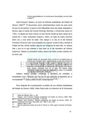 Fueron sorprendidos en un punto poco frecuentado y se los mató a todos 188 . José Francisco Velasco, es autor de Noticias estadísticas del Estado de Sonora (1850) 189 . Él documenta varios enfrentamientos contra los seris entre los que se encuentran: la guerra entre Migueletes (eran las tropas asignadas a Sonora, bajo el mando del coronel Domingo Elizondo) y Cimarrones (seris) en 1780 y el ataque de Víctor Araiza a la isla Tiburón donde se tiene noticia de la muerte de 11 seris, incluyendo mujeres y niños y el rapto de cuatro menores entre uno y once años de edad. Otro ataque a la isla es el del General Francisco Ponce de León cuyo propósito era capturar a toda la tribu y llevarla al Pueblo de Seri, donde residían algunos de indígenas de esta tribu. Un ataque más y que es el que interesa a esta tesis es el del secuestro de Dolores Casanova. Velasco al comentarlo indica, acerca del último suceso violento con los seris, que: Cuando dentro de cincuenta años, se lea en la historia que un puñado de criminales Ceris, seguramente no más de ochenta de la tribu capaces de portar armas, pudieron dominar en medio de sus crímenes, con audacia sin igual, a causa de la debilidad del gobierno y los habitantes, se tomará por una novela o una fábula; pues parece imposible que en el siglo XIX pueda existir semejante estado de cosas que degradan la razón, la moralidad y la dignidad del hombre civilizado. Velasco reporta también, incidentes e itinerarios de campaña a autoridades como: “Relación que nos dio de esa población el secretario de su municipalidad” 190 ; Carta y oficio de don Tomás Spence 191 192 . Poco después de la presentación al público de sus Noticias Estadísticas del Estado de Sonora (1850), Pablo Rubio pide a la dirección de El Sonorense 188 Citado por McGee, Idem . p. 152 189 Velasco, José Francisco Noticias estadísticas del Estado de Sonora (1850) 1995; Gobierno del Estado de Sonora; Hermosillo. P. 140-144 190 Velasco, José Francisco. Noticias estadísticas del Estado de Sonora (1850). Ed. Gobierno del Estado de Sonora. Hermosillo, Son. 1985. 2° ed. p. 292. 191 Velasco, Idem, p. 292 192 Spence explora las costas de la Isla El Tiburón en 1844, según Fortunato Hernández, Idem. p. 24 90