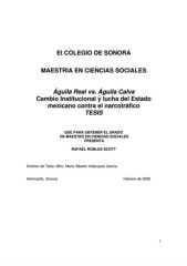 El COLEGIO DE SONORA MAESTRIA EN CIENCIAS SOCIALES Águila Real vs. Águila Calva Cambio Institucional y lucha del Estado mexicano contra el narcotráfico TESIS QUE PARA OBTENER EL GRADO DE MAESTRO EN CIENCIAS SOCIALES PRESENTA RAFAEL ROBLES SCOTT Director de Tesis: Mtro. Mario Alberto Velázquez García. Hermosillo, Sonora Febrero de 2006 1