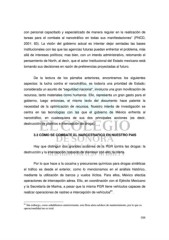 con personal capacitado y especializado de manera regular en la realización de tareas para el combate al narcotráfico en todas sus manifestaciones” (PNCD, 2001: 83). La visión del gobierno actual es intentar dejar sentadas las bases institucionales con las que las agencias futuras puedan enfrentar el problema, más allá de intereses políticos; mas bien, con un interés administrativo, retomando el pensamiento de North, al decir, que el actor institucional del Estado mexicano está tomando sus decisiones en razón de preferencias proyectadas al futuro. De la lectura de los párrafos anteriores, encontramos los siguientes aspectos: la lucha contra el narcotráfico, es todavía una prioridad de Estado; considerada un asunto de “seguridad nacional”, involucra una gran movilización de recursos, tanto materiales como humanos. Ello, representa un gran gasto para el gobierno, luego entonces, el mismo texto del documento hace patente la necesidad de la optimización de recursos. Nuestro interés de investigación se centra en las tecnologías con las que el gobierno de México enfrenta al narcotráfico, en cualesquiera de sus dos principales acciones (es decir, destrucción de plantíos e intercepción de droga). 3.3 CÓMO SE COMBATE EL NARCOTRAFICO EN NUESTRO PAIS Hay que distinguir dos grandes acciones de la PGR contra las drogas: la destrucción y la intercepción, tratando de disminuir con ello, la oferta. Por lo que hace a la cocaína y precursores químicos para drogas sintéticas el tráfico es desde el exterior, como lo mencionamos en el análisis histórico, mediante la utilización de barcos y vuelos ilícitos. Para ellos, México efectúa operaciones de intercepción aérea. Ello, en coordinación con el Ejército Mexicano y la Secretaría de Marina, a pesar que la misma PGR tiene vehículos capaces de 61 realizar operaciones de rastreo e intercepción de vehículos . 61 Sin embargo, como señalábamos anteriormente, esta flota aérea adolece de mantenimiento, por lo que su operacionalidad no es total. 104