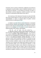 funcionarios a tener muy claras sus atribuciones y obligaciones, para someter así su desempeño al escrutinio público, aunque en diferentes documentos, como el Plan Nacional de Desarrollo y el Plan Nacional de Procuración de Justicia, no están definidos los términos trasparencia y rendición de cuentas lo que es algo recurrente en la administración pública federal (Arroyo, 2004: 6). De tal suerte que el Plan Nacional de Procuración de Justicia 2001-2006, sólo enumera acciones ideales en el mejor de los casos de cómo cumplir con las responsabilidades en materia de seguridad pública del gobierno entonces entrante; dicho plan, fue elaborado por la PGR. La realidad es que estos informes se abocan literalmente a la descripción de hechos policíacos, presentan series estadísticas no completas que no permiten formarse una idea clara de la evolución del delito, mucho menos de la evolución o deterioro de las actividades de la Procuraduría, así como descripción de las bandas que operan el país y hasta su modus operandi. En materia de narcotráfico, cuando se trata de evaluar el desempeño real de la Procuraduría, quienes estamos interesados en el tema , nos encontramos con la primera dificultad de no saber cual es el parámetro a medir; porque se puede inferir que los resultados de la Procuraduría son mejores año con año, pero lo cierto es que conforme se decomisa y destruye más droga y se logra la detención de mayor número de personas, es porque en el mercado hay mayor demanda y circulación de productos ilícitos, así como el reclutamiento de mayor número de personas, tendientes a lograr una mayor división del trabajo en el narcotráfico, de ahí su eficiencia; pero también podría tratarse de evaluar en razón de los documentos oficiales, como el Plan Nacional de Desarrollo o el Plan Nacional de procuración de Justicia o incluso utilizando los compromisos que se han adquirido con Estados Unidos. Sin embargo, ninguno de estos documentos son aptos para la evaluación, porque los mismos datos que se presentan por las autoridades son sesgados y tendientes a corroborar sus informaciones mediáticas. 118
