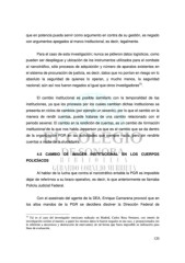 que en potencia pueda servir como argumento en contra de su gestión, es negado con argumentos apegados al marco institucional, es decir, legalmente. Para el caso de esta investigación; nunca se pidieron datos logísticos, como pueden ser despliegue y ubicación de los instrumentos utilizados para el combate al narcotráfico, sólo procesos de adquisición y número de aparatos existentes en el sistema de procuración de justicia, es decir, datos que no ponían en riesgo en lo absoluto la seguridad de quienes lo operan, y mucho menos, la seguridad 73 nacional; aún así nos fueron negados al igual que otros investigadores . El cambio institucional es posible asimilarlo con la temporalidad de las instituciones, ya que los procesos por los cuales cambian dichas instituciones se presenta en ciclos de cambios (por ejemplo un sexenio), por lo que el cambio en la manera de rendir cuentas, puede tratarse de una cambio relacionado con el periodo sexenal. El cambio en la rendición de cuentas, es un cambio de formación institucional de la que nos habla Jepperson ya que es el cambio que se da dentro de la organización PGR en las actividades que siempre hacía, pero sin rendirle cuentas a nadie de la ciudadanía. 4.5 CAMBIO DE IMAGEN INSTITUCIONAL EN LOS CUERPOS POLICÍACOS Al hablar de la lucha que contra el narcotráfico entabla la PGR es imposible dejar de referirnos a su brazo operativo, es decir, lo que anteriormente se llamaba Policía Judicial Federal. Con el asesinato del agente de la DEA, Enrique Camarena provocó que en los altos mandos de la PGR se decidiera disolver la Dirección Federal de 73 Tal es el caso del investigador mexicano radicado en Madrid, Carlos Resa Nestares, con interés de investigación similar al nuestro, a quien los mismos datos le fueron negados en un caso, y proporcionados (en lo referente a decomisos y destrucción de enervantes) de tal forma que fuera imposible su utilización para fines de evaluación. 120