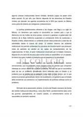 algunos actores institucionales tienen limitada, dándose juegos de poder entre estos actores. Es por ello, que México depende de las directrices de Estados Unidos, por ejemplo, los agentes encubiertos de la DEA que operan en México como parte del sistema de inteligencia norteamericano. La política prohibicionista referente a las drogas, casi llega a un siglo en México. Un fenómeno que explica el narcotráfico en nuestro país y que le diferencia con las mafias de otros países, comenzó a gestarse: el gobernador del territorio de la Baja California auspiciaba el contrabando ilícito de sustancias a Estados Unidos, desarrollando un ambiente donde había protección a este tipo de actividades desde la cúpula del poder. El análisis histórico del ambiente institucional nos permite contemplar los procesos de transformación que producen ciclos de periodos de cambio en las reglas de comportamiento de las organizaciones. Si bien, el actor institucional encarnado por el Estado mexicano, dispone de una serie de recursos para luchar contra el narcotráfico, en un pasado, él mismo fue quien modeló el ambiente que se presenta en la actualidad. Como Douglass North señala, los actores institucionales realizan convenciones, que se entienden como arreglos entre los actores que comparten intereses en común dentro de cualquier problema. Por ello, es que el narcotráfico pasó de ser un problema considerado como amenaza para el Estado a un problema que se percibe por la población como daño al bien común, por lo que existe el consenso generalizado dentro de la población y el gobierno que el Estado debe encaminar sus esfuerzos a la implementación de políticas exitosas contra el problema. Derivado de la aseveración anterior, la lucha del Estado mexicano es fuente del cambio institucional discontinuo, como dice North, acontecimientos tales como las guerras, asemejándola, en nuestro estudio, el enfrentamiento contra el narcotráfico en territorio nacional. 132