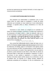 que tienen las organizaciones para recolectar información y el costo a pagar en el momento de tomar sus decisiones. 1.5 EL NUEVO INSTITUCIONALISMO POLITOLÓGICO Esta perspectiva neo institucionalista la consideramos como el punto medular teórico de nuestro trabajo de investigación: el estudio del cambio institucional, que es abordado con mayor amplitud por el nuevo institucionalismo politológico, la seguridad pública en México enfocándonos en el tema del narcotráfico. Encontramos en esta vertiente una amalgama de los postulados que hicieron las vertientes sociológica y económica; se concede mayor importancia a los presupuestos del análisis racional y costos de transacción (dado por la corriente económica) y el análisis organizacional, dado por la sociológica. Enfoca en esa perspectiva los mecanismos mediante los cuales los individuos y las organizaciones toman sus decisiones, es el tema central de estudio de esta corriente (Rivas Leone:2003, 42). Esta corriente neo institucionalista retoma el papel del Estado como un agente primordial en la creación de leyes y del marco en el que se desenvuelven las instituciones; sin embargo, asigna un rol importante a otros agentes sociales en la arena institucional: las ONG’s, los partidos políticos y el poder Legislativo, los medios de comunicación, por ejemplo. Estas organizaciones a las que acabamos de referirnos, aportan elementos de orden (March y Olsen:1989, 25). Además, las instituciones juegan un doble papel, sea agregativas o integrativas. En cuanto a las primeras, se crean mediante la negociación y el consenso, donde los individuos involucrados aceptan sacrificar algunas de sus preferencias a cambio de satisfacer otras. Las segundas, por el diálogo razonado, reflejando las preferencias compartidas por los ciudadanos. Por ello, las modificaciones a los 29