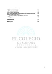 4.2 No todo es el equipo 114 4.3 Presiones Internas 115 4.4 Rendición de cuentas 120 4.5 Cambio de imagen institucional en los cuerpos policíacos 120 4.6 El Cambio Institucional: la política de Seguridad Pública mexicana 124 4.7 Esquema 126 Conclusiones 131 Bibliografía 140 3