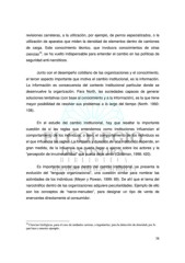 revisiones carreteras, a la utilización, por ejemplo, de perros especializados, o la utilización de aparatos que miden la densidad de elementos dentro de camiones de carga. Este conocimiento técnico, que involucra conocimientos de otras 10 ciencias , se ha vuelto indispensable para entender el cambio en las políticas de seguridad anti-narcóticos. Junto con el desempeño cotidiano de las organizaciones y el conocimiento, el tercer aspecto importante que motiva el cambio institucional, es la información. La información es consecuencia del contexto institucional particular donde se desenvuelve la organización. Para North, las sociedades capaces de generar soluciones tentativas (con base al conocimiento y a la información), es la que tiene mayor posibilidad de resolver sus problemas a lo largo del tiempo (North. 1993: 108). En el estudio del cambio institucional, hay que resaltar la importante cuestión de si las reglas que entendemos como instituciones influencian el comportamiento de los individuos, o bien, el comportamiento de los individuos es el que influencia las reglas. La fortaleza y duración de una institución depende, en gran medida, de la influencia que pueda llegar a ejercer sobre los actores y la “percepción de invulnerabilidad” que pueda dejar sentir (Goldman, 1998: 420). Es importante anotar que dentro del cambio institucional, se presenta la evolución del “lenguaje organizacional”, una cuestión similar para nombrar las actividades de los individuos (Meyer y Rowan, 1999: 89). De ahí que el tema del narcotráfico dentro de las organizaciones adquiere peculiaridades. Ejemplo de ello son los conceptos de “narco-menudeo”, para designar un tipo de venta de enervantes directamente al consumidor. 10 Ciencias biológicas, para el caso de unidades caninas, o ingenierías, para la detección de densidad, por lo que hace a nuestro ejemplo. 38