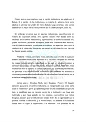 Existen autores que sostienen que el cambio institucional es guiado por el Estado. Si el cambio de las instituciones, en materia de gobierno, tiene como objetivo el optimizar la función del mismo Estado; luego entonces, este cambio debe ser (en la mayor de las veces) inducido por el Estado (Sarghini, 2000: 42). Sin embargo, creemos que en algunas instituciones, específicamente en materia de seguridad pública, otros agentes sociales han dejado sentir su influencia en el cambio institucional y organizacional, tal como la sociedad civil, grupos de víctimas, gobiernos extranjeros, entre otros. Podemos decir entonces, que el Estado implementa formalmente el cambio en sus agencias, pero como el resultado de la interacción de agentes que juegan un rol interactivo, aún fuera de las filas del aparato estatal. Friedland y Alford, del mismo modo, comentan que el éxito de cualquier tentativa de cambio institucional dependen de la naturaleza del poder así como de las reglas institucionalmente específicas por las que se producen, asignan y controlan los recursos (de las instituciones) (Friedland y Alford, 1999: 321). Ellos mismos nos dicen al referirse al cambio institucional que cuando se presenta éste, las personas o las organizaciones se movilizan para defender los símbolos (o conductas previamente institucionalizadas) de las consecuencias del cambio por la entrada de nuevas instituciones. Varios autores (Douglass North, Mary Douglass, Powell y Di Maggio) coinciden que previo al cambio institucional, es indispensable que exista cierta clase de “estabilidad”, por lo que podemos pensar en una estabilidad dual: por una lado, la estabilidad que se necesita dentro de la institución; que haya sido legitimada y que haya pasado por los procesos cognoscitivos que refiere Douglass, es decir, que la institución esté estable dentro de la organización que la practica o dónde se desarrolló, y al mismo tiempo, sea estable en la sociedad donde tiene su lugar la organización y la institución. Las prácticas de las 39