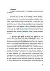 CAPITULO 2 EL AMBIENTE INSTITUCIONAL EN EL COMBATE AL NARCOTRÁFICO EN MÉXICO Considerada como un flagelo de las sociedades modernas, el tráfico y abuso de estupefacientes es atendido como prioridad de Estado por múltiples naciones del mundo, pero en especial, por países americanos y asiáticos. Estados Unidos, como el máximo consumidor de droga del mundo, y América Latina, como principal productor de droga, juegan un rol protagonista en la esfera mundial. México se encuentra en un enclave territorial estratégico para los narcotraficantes; considerado como la puerta de acceso al mercado más grande de la droga en el mundo, lo que trae consigo que las relaciones bilaterales México-Estados Unidos se encuentren influenciadas de manera poderosa por este tema. Es por ello que abordaremos, dentro del marco de la seguridad pública, el tema del narcotráfico en México. La intención de este capítulo es describir cómo evolucionó la lucha mexicana contra el narcotráfico, como herramienta que explica el contexto en el que se toman las decisiones y determina la interacción de las organizaciones en esto que hemos llamado un tipo de “ambiente institucional”. Para ello, dividimos su estudio en cuatro grandes periodos, que presentan características en particular. El primero de principios de siglo hasta la década de los años treinta, donde se presenta la gestación y definición del narcotráfico como un problema contrario a los intereses del estado; un segundo periodo (1930-1960), donde se sientan las bases del narcotráfico actual; el tercero, (1960-1990), donde se establecen los mecanismos por parte de la delincuencia que le permiten desafiar directamente a las políticas establecidas por el Estado, y por último, un cuarto periodo, (1990- 2005), que comienza desde la década de los noventa y se extiende hasta nuestros días, mismo que se caracteriza por la penetración del narcotráfico hasta la cima del poder, pudiendo así revisar como fueron gestándose las interacciones entre los diversos agentes que iremos identificando a lo largo de este capítulo; para dar 45