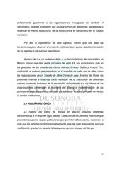 señalamiento igualmente a las organizaciones encargadas del combate al narcotráfico, quienes finalmente son las que toman las decisiones estratégicas y modifican el marco institucional de la lucha contra el narcotráfico en el Estado mexicano. Por ello la importancia de este capítulo, mismo que nos dará las herramientas para observar el ambiente institucional en que se daba la interacción de los agentes a los que nos referiremos. A pesar de que no podemos dejar a un lado la historia del narcotráfico en México, mismo que data desde principios del siglo XX, nos enfocaremos más en las gestiones de los presidentes Carlos Salinas, Ernesto Zedillo y Vicente Fox; analizando el entorno que prevalecía en el mandato de cada uno de ellos, como las negociaciones de un Tratado de Libre Comercio para América del Norte, las presiones internas y externas como resultado de la interacción de diferentes actores, sentando las bases de la descripción del ambiente que los líderes de las organizaciones contemplan al momento del diseño e implementación de las políticas de seguridad pública nacional, por identificar en estos periodos de tiempo el cambio institucional. 2.1 RESEÑA HISTÓRICA La historia del tráfico de drogas en México presenta diferentes características a lo largo del siglo pasado. Cada uno de los periodos históricos que presentamos posee rasgos particulares que permiten diferenciarlos, haciendo la nota que los periodos no terminan súbitamente para dar paso al siguiente, son una modificación gradual de características que se dan con el paso del tiempo. 46