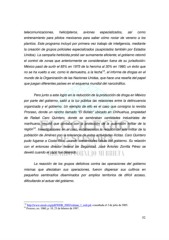 telecomunicaciones, helicópteros, aviones especializados, así como entrenamiento para pilotos mexicanos para saber cómo rociar de veneno a los plantíos. Este programa incluyó por primera vez trabajo de inteligencia, mediante la creación de grupos policiales especializados (auspiciados también por Estados Unidos). La campaña herbicida probó ser sumamente eficiente; el gobierno retomó el control de zonas que anteriormente se consideraban fuera de su jurisdicción: México pasó de surtir el 85% en 1975 de la heroína al 30% en 1980; un éxito que 13 no se ha vuelto a ver, como lo demuestra, a la fecha , el informe de drogas en el mundo de la Organización de las Naciones Unidas, que hace una reseña del papel que juegan diferentes países en el esquema mundial del narcotráfico. Pero junto a este logro en la reducción de la producción de droga en México por parte del gobierno, salió a la luz pública las relaciones entre la delincuencia organizada y el gobierno. Un ejemplo de ello es el caso que consigna la revista Proceso, donde un rancho llamado “El Búfalo” ubicado en Chihuahua, propiedad de Rafael Caro Quintero, donde se sembraban cantidades industriales de marihuana, resultó que contaba con la protección de la guarnición militar de la 14 región . Investigaciones en el caso, establecieron la relación del jefe militar de la población de Jiménez con la tolerancia de estas actividades ilícitas. Caro Quintero pudo fugarse a Costa Rica, usando credenciales falsas del gobierno. Su relación con el entonces director federal de Seguridad, José Antonio Zorrilla Pérez se develó cuando el capo fue detenido. La reacción de los grupos delictivos contra las operaciones del gobierno mismas que afectaban sus operaciones, fueron dispersar sus cultivos en pequeños sembradíos diseminados por amplios territorios de difícil acceso, dificultando el actuar del gobierno. 13 http://www.unodc.org/pdf/WDR_2005/volume_1_web.pd, consultada el 3 de julio de 2005. 14 Proceso, no. 1060, p. 10, 23 de febrero de 1997. 52