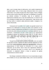 debe, a que el concepto clásico de delincuencia, como cuestión simplemente de “seguridad pública”, tenía un fuerte arraigo institucional dentro de los actores institucionales. Como señalan Douglass North, Mary Douglass, Powell y Di Maggio para que exista el cambio institucional, debe haber una estabilidad en la institución que pretende cambiarse. El narcotráfico, antes de su redefinición era legítimamente considerado como un tipo más de delincuencia, y la manera en que se le enfrentaba era estable dentro de las organizaciones. Luego entonces, para que haya cambio, la institución estaba plenamente estable y arraigada en los actores institucionales. Consecuencia del narcotráfico como cuestión de seguridad nacional fue el fenómeno de la militarización en funciones de policía. Como podremos ver más adelante, el gradual empoderamiento del Ejército en la lucha contra el narcotráfico es síntoma de cambio institucional derivado de la multicitada redefinición: hay una movilización y transformación del poder humano dentro de las organizaciones encargadas de ejecutar las instituciones (Acosta, 2002: 27). Es decir, ahora la PGR no debe enfrentar sola el problema, sino que debe compartir poder con otro actor institucional. De igual forma, el que México considere el narcotráfico como una cuestión de “seguridad nacional”, es ejemplo del cambio incremental establecido por North, ya que estos actores institucionales, (agencias de seguridad pública, mexicanas y estadounidenses, al mismo tiempo), se involucraron en un nuevo contexto institucional, que les permite, hasta la fecha tener negociaciones diferentes y adquirir compromisos que antes no se tenían, como lo es el intercambio de información, la cooperación bilateral e incluso la operación de agentes norteamericanos en territorio nacional. Sin embargo, la pretensión de México era el no ser coaccionado por alguno de los métodos con los que cuenta Estados Unidos, como lo eran las sanciones 58