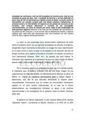 toneladas de marihuana, más de 243 toneladas de cocaína pura, más de una tonelada de goma de opio, casi 1 tonelada de heroína, y se han detenido un poco más de 102 mil personas por delitos contra la salud. La lucha contra el narcotráfico es nuestra, porque este mal afecta nuestras instituciones, la armonía social y la vida familiar. El negocio en los países de consumo es tan lucrativo, que aunque detuvimos a muchos de los principales narcotraficantes, su vacío es llenado por otros, dada la alta rentabilidad de este perverso negocio. Mientras no se reduzcan las utilidades del narcotráfico en los países de alto consumo y no se avance más en desarticular bandas y capturar cabezas allá, cada éxito que alcancemos aquí será temporal: por eso nuestra lucha ha sido y seguirá siendo permanente”. Lo cierto es que presentaba poca transformación institucional de fondo contra el problema dentro de sus agencias encargadas de enfrentar el problema, otorgándole mayor importancia al demostrar una imagen de mayor determinación en la lucha contra el narco, aunque no se tradujera en la reducción del flujo de drogas, teniendo como objetivo primordial el consolidar una relación económica a nivel internacional (Andreas, 2003: 261). Se percibía que para Salinas “la motivación más importante es la percepción de que una mejor imagen de México pesará mucho” (en el ámbito internacional) (Andreas, 2003: 261). Por lo expuesto, estamos en posibilidad de decir que en la década pasada, lo importante para el gobierno mexicano era dar una mejor imagen de sus organizaciones de seguridad pública, no importando que la situación al interior de México en materia de narcóticos permaneciera igual o incluso llegase a deteriorarse, más allá de que estuviese demostrada la relación poder- narcotraficantes. Encontramos que los medios de comunicación (extranjeros) jugaban un rol como actores institucionales. En el caso de la prensa estadounidense, sus investigaciones brindaban su apoyo a las acciones intervencionistas y de investigación de su gobierno hacia el exterior (Andreas, 2003: 263). El gobierno de Salinas implementó un plan conjunto México-EUA, llamado “Operación Halcón”, coordinando al Ejército mexicano y la PGR con la DEA 70