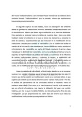 del “nuevo” institucionalismo”, será menester hacer mención de la existencia de la corriente llamada “institucionalismo” que le precede, misma que explicaremos brevemente para contextualizar. El segundo capítulo de este trabajo, hace una descripción del ambiente donde se generan las interacciones entre los diferentes actores relacionados con el narcotráfico en México que tienen alguna atribución en la toma de decisiones. Este apartado se extiende hasta el análisis de nuestros días y tiene una doble finalidad: ilustrar el ambiente en el que se toman las decisiones y presentar la serie de actores y organizaciones que se involucran en la modificación de las instituciones creadas para combatir el narcotráfico. Con el objetivo de facilitar el manejo de la información que presentamos, hemos dividido en cuatro periodos el enfrentamiento del narcotráfico por parte del Estado mexicano: la primer etapa marcada por la definición del narcotráfico como una conducta contraria a la ley; la segunda, la implementación de políticas de Estado y el comienzo de la influencia de actores institucionales internos y externos; la tercera, la redefinición del narcotráfico como un problema de seguridad nacional y la cuestión relativa al empoderamiento de funciones de actores institucionales como el ejército; y la cuarta, con la modificación del marco institucional que prevalece en nuestros días. Pese al problema del narcotráfico es de la mayor relevancia en el acontecer nacional, han existido influencias que a lo largo de la segunda mitad del siglo XX hicieron que dicha cuestión se modificara en cuanto a su combate refiere, lo que sugiere que existe lo que la teoría denomina como “cambio institucional”. Por ello, el análisis del pensamiento de los principales teóricos al respecto, marca el comienzo este trabajo. Pero como ya lo mencionamos el cambio en la manera en que se enfrentó el problema, nos impone la obligación de hacer una revisión histórica, por ello es que el análisis histórico es relevante para los fines de esta investigación, ya que proporcionará una visión clara del entorno que rodea las modificaciones institucionales que se practican en México. 8