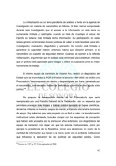 La militarización es un tema pendiente de análisis a fondo en la agenda de investigación en materia de narcotráfico en México. Si bien hemos comprobado durante esta investigación que el acceso a la información en este tema es sumamente limitada y restringida, cuando se trata de investigar el actuar del Ejército es todavía más limitada dicha información. Su participación en estas tareas genera controversias incluso jurídicas de saber si está facultado para ello: investigación, evaluación, diagnóstico y operación. Su función está limitada a garantizar la seguridad interior, entonces habría que discernir primero, si el narcotráfico es cuestión de seguridad interior. Quienes se oponen a la referida militarización, argumentan que el soldado está entrenado para obedecer, mientras que un policía está capacitado para indagar y utilizar la suspicacia como su mejor herramienta de trabajo. El mismo equipo de transición de Vicente Fox, realizó un diagnóstico del Estado que se encontraba la PGR al finalizar el sexenio 1994-2000: se recibía una Procuraduría “descompuesta por dentro y desprestigiada por fuera, penetrada por el narcotráfico, con elevados índices de ineficiencia y sumida en una aguda crisis 46 política” . Se propuso la desaparición misma de la Procuraduría que sería reemplazada por una Fiscalía General de la Federación, con un esquema que permitiera procesos más limpios y trabajo policial apoyado en bases científicas, donde los militares no tuvieran cargos de mando; el Ejército sólo tendría funciones de apoyo. Hoy sabemos que este proyecto no se llevó a cabo. La transformación institucional antes planteada, buscaba romper con los esquemas de corrupción que habían sido acusados por la prensa en años anteriores. Los diagnósticos del equipo de transición nos dejan ver que los actores institucionales, como por ejemplo la presidencia de la República, toman sus decisiones en razón de la cantidad de información que tienen a la mano, junto con el ambiente institucional que influencia la aplicación de las políticas de seguridad pública. Como 46 Proceso no. 1247, p. 22, 24 de septiembre de 2000. 92