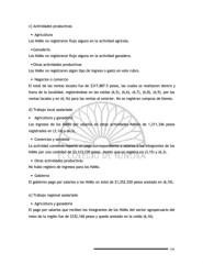 c) Actividades productivas • Agricultura Los HAMx no registraron flujo alguno en la actividad agrícola. • Ganadería Los HAMx no registraron flujo alguno en la actividad ganadera. • Otras actividades productivas Los HAMx no registraron algún tipo de ingreso o gasto en este rubro. • Negocios o comercio El total de las ventas locales fue de $317,887.5 pesos, las cuales se realizaron dentro y fuera de la localidad, registrándose en las celdas (6,5), (6,6), (6,7), (6,8), (6,9), por las ventas locales y en (6,16) para las ventas al exterior. No se registran compras de bienes. d) Trabajo local asalariado • Agricultura y ganadería Los ingresos de los HAMx por salarios en estas actividades fueron de 1,211,346 pesos registrados en (3,14) y (6,3). • Comercios y servicios La actividad comercio reportó un pago correspondiente a salarios a los integrantes de los HAMx por una cantidad de $3,112,270 pesos, monto que se registra en (3,15) y (6,3). • Otras actividades productivas No hubo registro de ingresos para los HAMx. • Gobierno El gobierno pago por salarios a los HAMx un total de $1,252,520 pesos anotado en (6,10). e) Trabajo regional asalariado • Agricultura y ganadería El pago por salarios que reciben los integrantes de los HAMx del sector agropecuario del resto de la región fue de $332,160 pesos y quedo anotado en la celda (6,16). 126
