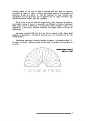 máximas etapas en mi vida; en ella se resumen casi seis años de constante aprendizaje y trabajo, lo cuales no hubiera sido posible alcanzar sin su enseñanza y asistencia. Gracias por darme su voto de confianza en cada decisión, por descabellada que ésta pareciera; por no dejarme caer en ningún momento y por impulsarme a correr riesgos, ayer, hoy y siempre. De la misma forma, un merecido reconocimiento a los habitantes de todas las comunidades rurales de Sonora, en especial a los del Ejido La Victoria. Gracias por todos estos años de experiencias y conocimientos; por permitirme entrar a sus hogares una y otra vez, y hacerme comprobar que siguen siendo el corazón de nuestro país. Agradezco también al MC. José de la Luz Navarro Lagarda y al Dr. Miguel Ángel Vázquez, la disposición y cometarios aportados para el enriquecimiento de este trabajo de tesis. Finalmente, agradezco al Consejo Nacional de Ciencia y Tecnología (CONACYT), el apoyo económico recibido durante los dos años de duración del programa de maestría. R ROSANA OSANA MMÉNDEZ ÉNDEZ BBARRÓNARRÓN M MARZO DE ARZO DE 20042004 ii