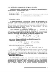 II.2.a. Multiplicadores de la producción, del ingreso y del empleo II.2.a. Multiplicadores de la producción, del ingreso y del empleo Quedando la tabla de transacciones de una economía como se muestra abajo, el paso siguiente es la normalización de la matriz. Donde: X 1=X 11+X 12+…+X 1n+Y 1 X 2=X 21+X 22+…+X 2n+Y 2 X i = Producción total del sector intermedio i (total de renglón o columna). . . X ij = producción del sector i comprada al sector j. Y i = demanda final total para la producción del sector i. . . . . X n=X n1+X n2+…+X nn+Y n La matriz normalizada es la resultante de la división de los elementos de las columnas de la tabla de transacciones por el total respectivo de cada columna; de esta operación se derivan una serie de coeficientes que representan claramente los patrones de compra de cada sector. Esos coeficientes son denominados de distintas formas, entre las cuales encontramos: coeficientes “directos”, de “insumo-producto” o de forma menos apropiada coeficientes “técnicos”. Tales coeficientes son normalmente denotados como a ij y representan los requerimientos o insumos directos de cada sector i, generados por un incrementos de una unidad de producción del sector j: a ij= X ij/X j, donde a ij es el coeficiente de insumo- producto. En términos del álgebra matricial, esto puede ser representado como: X = A X + Y nxx 1 nxx n nxx1 nxx 1 Donde A= [a ij],, representa la matriz de coeficientes directos de la MCS. Si despejamos, obtenemos lo siguiente: X – AX = Y X ( I - A) = Y Resolviendo el sistema, obtenemos la solución general: -1 X = Y ( I – A ) , que es la denominada inversa de Leontief. Tres de los multiplicadores más frecuentemente usados en base a la inversa de Leontief, son aquéllos que estiman los efectos de los cambios exógenos sobre: a) la producción del sector en la economía, b) el ingreso obtenido por los hogares debido a la nueva producción, y c) el empleo –en términos físicos-, que se espera sea generado debido a la nueva producción. § Multiplicadores de la producciónMultiplicadores de la producción -1 Si Z=Y(I-A) =[z ij]. La matriz Z es denominada la matriz de coeficientes de interdependiencia. Cada electo z ij indica los requerimientos directos e indirectos totales para el sector i que se presentan al existir un incremento en las ventas de una unidad de demanda final para el sector j. La matriz Z provee información estructural importante dado que indica la fortaleza de las relaciones económicas intersectoriales. Los 15