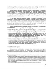 coeficientes z ij indican la magnitud de cómo cambios en el nivel de actividad de un sector afectan los niveles de producción de todos los demás sectores. 29 Si cada elemento z ij muestra los efectos directos e indirectos sobre la producción de cada sector de un incremento en las ventas de una unidad de demanda final del sector j, entonces iz ij o la suma de las columnas de la inversa del modelo abierto, 30 mostrará los efectos en todos los sectores de un incremento en las ventas de una unidad de producción para la demanda final del sector j. En base a ello iz ij es denominado el multiplicador simple de la producción. * * Por oto lado, cuando el modelo es cerrado, la inversa Z =[z ij]=Y(I-A) -1 y los * elementos z ij proveen los efectos directo, indirectos e inducidos sobre la producción de cada sector de un incremento en las ventas de demanda final para el sector j. Las sumas de las columnas de la inversa nos generan una medida del multiplicador total de la * producción, que es básicamente lo que se busca. En este caso, la matriz Z que es denominada del modelo cerrado no es otro cosa que nuestra MCS. Una vez realizado lo anterior es posible distinguir tres efectos en el multiplicador de la producción: § Efectos directos. Estos se perciben por los coeficientes directos a ij , y representan los efectos inmediatos sobre cada sector, de un incremento en la producción del sector j. § Efectos indirectos. Estos se muestran junto con los efectos directos en z ij , y representan los requerimientos de soporte industrial subsecuente de cada sector, siguiendo un incremento en las ventas de demanda final de cualquier sector. Los efectos indirectos pueden ser calculados simplemente como z ij-a ij. § Efectos inducidos. Al igual que el anterior, están contenidos junto con los efectos directos e indirectos en z ij , y representan los efectos sobre la producción de cada sector ocasionada por un incremento en el consumo de los hogares, como resultado de un incremento en las ventas de la demanda final de cualquier sector. Los efectos * inducidos de cualquier sector pueden ser calculados como z ij-z ij. § Multiplicadores de IngresoMultiplicadores de Ingreso Básicamente, los multiplicadores de ingreso miden los incrementos en el ingreso generados por un cambio específico en la economía. 31 Los efectos directos de incrementos en la producción sobre el ingreso de los hogares esta dado por el renglón de 29 Los efectos directos pueden ser denominados apropiadamente como “efectos industriales locales de soporte” (local industrial support effects). 30 La diferencia entre un modelo abierto y uno cerrado, descansa básicamente en el tratamiento que se le da a los hogares en la matriz de IO, es decir, si son endógenos o exógenos. Los sectores endógenos son aquéllos que son influenciados por la estructura interna de la economía mientras que las exportaciones, el gasto en capital y los egresos gubernamentales son usualmente tratados como exógenos dado que son influenciados primeramente por factores externos a la economía regional. En base a ello, un modelo abierto es aquél que considera a los hogares como exógenos mientras que el modelo cerrado, los considera endógenos (la MCSP es un modelo cerrado dado que las decisiones de consumo se toman al interior de una comunidad). 31 Cuando hablamos de ingreso hacemos referencia a los ingresos de los hogares, esto es, sueldo y salarios. 16