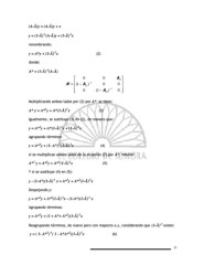 (A-Ã)y = (A-Ã)y + x -1 -1 y = (1-Ã) (A-Ã)y + (1-Ã) x renombrando: y = A*y + (1-Ã) x (2) -1 donde: -1 A* = (1-Ã) (A-Ã) Ø 0 0 A 13 ø Œ A * = 1( - A 21 ) -1 0 0 œ Œ œ Œ 0 1 ( - A 32 ) -1 0 œ ß º Multiplicando ambos lados por (2) por A* se tiene: 2 -1 A* y = A* y + A*(1-Ã) x (3) Igualmente, se sustituye (3) en (2), de manera que: -1 -1 2 y = A* y + A*(1-Ã) x + (1-Ã) x agrupando términos: -1 2 -1 y = A* y + (1- A*) (1-Ã) x (4) si se multiplican ambos lados de la ecuación (2) por A*, resulta: 2 -1 2 2 A* y = A* y + A* (1-Ã) x (5) Y si se sustituye (4) en (5): 3 -1 2 -1 y - (1-A*)(1-Ã) x = A* y + A* (1-Ã) x Despejando y: -1 2 -1 3 y = A* y + A* (1-Ã) x - (1-A*)(1-Ã) x Agrupando términos: -1 3 2 y = A* y + (1 + A*+ A* )(1-Ã) x -1 Reagrupando términos, de nuevo pero con respecto a y, considerando que (1-Ã) existe: 3 -1 2 -1 y = ( 1- A* ) ( 1 - A*A* )(1-Ã) x (6) 21