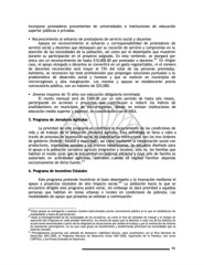 incorporar prestadores provenientes de universidades e instituciones de educación superior públicas o privadas. § Reconocimiento al esfuerzo de prestadores de servicio social y docentes Apoyos en reconocimiento al esfuerzo y corresponsabilidad de prestadores de servicio social y docentes que destaquen por su vocación de servicio y compromiso en la atención de las necesidades de la población, así como por el desempeño que muestren durante su participación en el proyecto asignado. En esta vertiente, se otorgará por única vez un reconocimiento de hasta $10,000.00 por prestador o docente. 86 En ningún caso, el apoyo otorgado a docentes se convertirá en un gasto regularizable, ni el número de docentes reconocidos será mayor al 15% del total de las personas premiadas. Asimismo, se reconocen las tesis profesionales que propongan soluciones puntuales a la problemática de desarrollo social y humano y que se realicen en municipios de microrregiones y alta marginación. Los montos y apoyos se establecerán previa convocatoria pública, con un máximo de $25,000. § Jóvenes mayores de 15 años con educación obligatoria terminada El monto mensual será de $300.00 por un solo periodo de hasta seis meses, participando en acciones o proyectos que contribuyan a reducir los índices de analfabetismo en municipios de microrregiones, donde no existan instituciones de educación media superior y superior, en coordinación con el INEA. 5. Programa de Jornaleros Agrícolas 5. Programa de Jornaleros Agrícolas La prioridad de este programa es contribuir al mejoramiento de las condiciones de vida y de trabajo de la población jornalera agrícola. Esta estrategia se lleva a cabo a través de procesos de promoción social de coordinación institucional con los tres órdenes de gobierno (federal, estatal y municipal), así como mediante la concertación social con productores, organismos sociales y los mismos beneficiarios. Se encuesta diseñado para el apoyo a la población jornalera agrícola (migrantes y locales); esto es, las familias que habitan el medio rural que se encuentran en pobreza extrema y cuyo jefe de familia es asalariado en actividades agrícolas, asimismo cuando el ingreso familiar dependa exclusivamente de dicha fuente. 87 6. Programa de Incentivos Estatales 6. Programa de Incentivos Estatales Este programa pretende incentivar el buen desempeño y la innovación mediante el apoyo a proyectos estatales de alto impacto social. 88 La población hacia la que se encuentra dirigido este programa podrá variar, sin embargo se dará prioridad a aquellas personas que habitan en zonas urbanas o rurales en condiciones de pobreza. Las modalidades de apoyo que presenta se enlistan a continuación: 86 Estos apoyos se entregarán a quienes resulten seleccionados previa convocatoria pública en la que se establezcan las modalidades y bases de participación. 87 Dada la heterogeneidad de las necesidades de los jornaleros, así como el tipo de unidades de trabajo y el tiempo de operación del Programa en cada entidad federativa, los montos de apoyo que se destinen a cada uno de los ámbitos de acción serán determinados a partir de los diagnósticos situacionales por unidad de trabajo y por la realización de talleres de planeación participativa, en los que cada grupo de beneficiarios y beneficiarias priorizará las necesidades que se deberán atender. 88 Principalmente proyectos que además de demostrar viabilidad técnica, sean consistentes con el Plan Nacional de Desarrollo 2001-2006, el Programa Nacional de Desarrollo Social 2001-2006, Superación de la Pobreza: una tarea CONTIGO, y los Planes Estatales de Desarrollo. 50