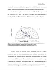 Introducción.... 8 actualidad las embarcaciones del pacifico capturan 10.2 toneladas lo que las coloca en una situación financiera difícil, que pone en peligro la viabilidad económica de esta rama. Esta situación se explica por un crecimiento desmedido del esfuerzo pesquero, el cual se evidencia en la figura 5., que muestra la correlación entre capturas promedio de camarón y tamaño de la flota camaronera en 39 temporadas en el puerto de Guaymas. Capturas promedio r= -.81 Número de barcos Figura no. 5. Correlación y línea de tendencia de las capturas promedio y el número de embarcaciones en el puerto de Guaymas en 39 temporadas de pesca. FUENTE: Centro regional de investigación pesquera sede Guaymas, boletín no.21. La gráfica muestra una correlación negativa entre tamaño de la flota y capturas promedio por barco, esta observación se confirma con un coeficiente de correlación r de - .81 que implica una correlación negativa intensa entre estas dos variables. Esto es, entre mayor el tamaño de la flota, menor el promedio de las capturas por embarcación, de lo que se infiere que hay evidencia de sobrecapitalización ya que al agregar una unidad más de 8 El promedio resulta de dividir 17,000 toneladas, que es el promedio en los últimos 10 años en el pacifico mexicano, entre 1,665 barcos que es el número de embarcaciones registradas en el año 2002. 13