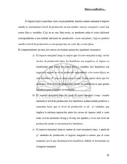 Marco explicativo... El ingreso I(q) es una línea curva cuya pendiente muestra cuanto aumenta el ingreso cuando se incrementa el nivel de producción en una unidad –ingreso marginal-; como hay costos fijos y variables, C(q) no es una línea recta, su pendiente mide el costo adicional correspondiente a una unidad adicional de producción –costo marginal-, C(q) es positivo cuando el nivel de producción es cero porque hay un costo fijo a corto plazo. El comportamiento de estas dos curvas en el plano genera los siguientes escenarios: a) El ingreso marginal (img) es mayor que el costo marginal (cmg): en los niveles de producción bajos los beneficios son negativos, el ingreso es insuficiente para cubrir los costos fijos y variables (los beneficios son negativos cuando no se ha producido nada debido a los costos fijos); en este escenario el img es mayor que el cmg, lo que quiere decir que los aumentos en el nivel de producción elevan los beneficios lo que genera incentivos para continuar produciendo. b) El ingreso marginal (img) es igual al costo marginal (cmg): cuando aumenta el nivel de producción, los beneficios acaban siendo positivos y aumentan hasta que el nivel de producción es de q* unidades que implica la máxima separación entre las curvas de ingreso total y costo total, en este momento el img y el cmg son iguales y es en este nivel de producción donde se maximizan los beneficios. c) El ingreso marginal (img) es menor al costo marginal (cmg): a partir de q* unidades de producción, el ingreso marginal es menor que el costo marginal, por lo que disminuyen los beneficios, debido al decremento en el ingreso marginal. 28