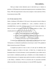 Marco explicativo... Dado que siempre existen alternativas para la intervención que se traducen en proyectos, el ACB proporciona una guía para jerarquizar proyectos racionalmente (Cohen y Franco, 1992). Este mapa decisiorio se basa en dos conceptos: el valor actual neto (VAN) y la tasa interna de retorno (TIR). 2.4.1. El valor actual neto (VAN). Stokey y Zeckhauser (1978) definen el VAN como el valor presente de todos los flujos de efectivo proyectados (FEP) en anualidades (n) -costos y beneficios- relevantes. La racionalidad básica es que todos preferimos un peso hoy que el mismo peso mañana -el dinero en la mano vale más que la promesa de la misma cantidad en el futuro -. Este concepto genera tres escenarios para la toma de decisiones: a) Cuando el VAN es mayor que cero, se acepta el proyecto. b) Cuando el VAN es igual a cero, es indiferente hacer el proyecto o no. c) Y cuando el VAN es menor que 0, se rechaza el proyecto. Si tenemos que decidir entro dos o más proyectos, se toma la opción que mayor VAN presente y la ordenación de preferencias se da de mayor a menor VAN, quedando al último el proyecto que menor VAN genere. La pregunta que queda en el aire es cual es el costo que los individuos están dispuestos a pagar por el dinero en las manos –el dinero hoy-, la respuesta que esta herramienta ofrece es la tasa de descuento o costo de oportunidad (r), que se define como la tasa de interés o rendimiento promedio que se obtendría con los fondos destinados a la inversión del proyecto, en la siguiente mejor opción de inversión si se decidiera no llevarlo a cabo (Stokey y Zeckhauser, 1978). Es convención entre los proyectistas nacionales utilizar la tasa líder en el mercado nacional que es el costo del CETE a largo plazo. 33