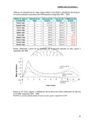 Análisis microeconómico... Tabla no.10. Duración de los viajes, ingreso diario, costo diario y utilidad por día de pesca de la flota industrial camaronera del LPM durante la temporada 2001 – 2002. Número de viajes en Duración de los Ingreso por día Costo por día Utilidad por día la temporada viajes de pesca de pesca de pesca Primer viaje 23 $ 2,614.72 $ 990.90 $ 1,623.83 Segundo viaje 29 $ 1,172.97 $ 665.47 $ 507.50 Tercer viaje 36 $ 745.28 $ 517.10 $ 228.18 Cuarto viaje 39 $ 558.59 $ 454.39 $ 104.19 Quinto viaje 33 $ 530.31 $ 522.52 $ 7.79 Sexto viaje 28 $ 502.61 $ 566.23 $ -63.62 Séptimo viaje 23 $ 643.77 $ 820.49 $ -176.72 Octavo Viaje 16 $ 970.45 $ 1,198.73 $ -228.28 Noveno viaje 12 $ 822.97 $ 1,587.78 $ -764.81 Décimo viaje 29 $ 183.04 $ 653.49 $ -470.45 Fuente: Elaborada a partir de los resultados de la encuesta aplicada en julio, agosto y septiembre del 2003. Figura no.16. Costo, ingreso y utilidad por día de pesca de la flota camaronera de alta mar en el LPM, temporada 2001 – 2002. FUENTE: La encuesta aplicada durante los meses de julio, agosto y septiembre de 2003. 49