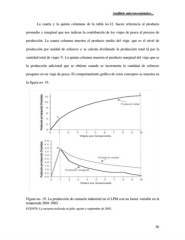 Análisis microeconómico... La cuarta y la quinta columnas de la tabla no.12. hacen referencia al producto promedio y marginal que nos indican la contribución de los viajes de pesca al proceso de producción. La cuarta columna muestra el producto medio del viaje, que es el nivel de producción por unidad de esfuerzo y se calcula dividiendo la producción total Q por la cantidad total de viajes V. La quinta columna muestra el producto marginal del viaje que es la producción adicional que se obtiene cuando se incrementa la cantidad de esfuerzo pesquero en un viaje de pesca. El comportamiento gráfico de estos conceptos se muestra en la figura no. 19. Figura no. 19. La producción de camarón industrial en el LPM con un factor variable en la temporada 2001-2002 . FUENTE: La encuesta realizada en julio, agosto y septiembre de 2003. 56