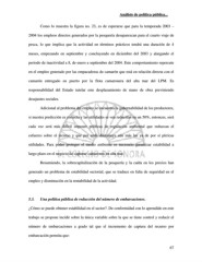 Análisis de política pública... Como lo muestra la figura no. 23, es de esperarse que para la temporada 2003 – 2004 los empleos directos generados por la pesquería desaparezcan para el cuarto viaje de pesca, lo que implica que la actividad en términos prácticos tendrá una duración de 4 meses, empezando en septiembre y concluyendo en diciembre del 2003 y alargando el periodo de inactividad a 8, de enero a septiembre del 2004. Este comportamiento repercute en el empleo generado por las empacadoras de camarón que está en relación directa con el camarón entregado en puerto por la flota camaronera del alta mar del LPM. Es responsabilidad del Estado tutelar este desplazamiento de mano de obra previniendo desajustes sociales. Adicional al problema del empleo se encuentra la gobernabilidad de los productores, si nuestra predicción es correcta y las utilidades se ven reducidas en un 50%, entonces, será cada vez será más difícil imponer políticas de regulación ambiental que reduzcan el esfuerzo sobre el recurso y que por ende disminuya aún más las ya de por sí pírricas utilidades. Para poder proteger el medio ambiente es necesario garantizar estabilidad a largo plazo en el negocio de capturar camarones en alta mar. Resumiendo, la sobrecapitalización de la pesquería y la caída en los precios han generado un problema de estabilidad sectorial, que se traduce en falta de seguridad en el empleo y disminución en la rentabilidad de la actividad. 5.3. Una política pública de reducción del número de embarcaciones. ¿Cómo se puede obtener estabilidad en el sector?. De conformidad con lo aprendido en este trabajo se propone incidir sobre la única variable sobre la que se tiene control y reducir el número de embarcaciones a grado tal que el incremento de captura del recurso por embarcación permita que: 67