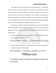 Análisis de política pública... Pero también tenemos que garantizar un aumento significativo en la utilidad de operación por barco. De nuestro modelo microeconómico se ha aprendido que el primer viaje por mucho es el más rentable debido a que a un esfuerzo similar al de los demás viajes de pesca se obtiene un premio de 4 toneladas de colas de camarón. Para garantizar un incremento significativo en la utilidad de operación, los retiros agregados por viaje deben ser de una magnitud tal que se deje en la cuenta el suficiente camarón para que el siguiente retiro sea de 4 toneladas promedio por embarcación hasta el sexto viaje. Resumiendo, se propone un número de embarcaciones tal que con 17 mil toneladas del recurso disponible promedio se puedan realizar seis viajes de pesca y que en cada viaje de pesca retiren cuatro toneladas de colas de camarón promedio. Para obtener el número de embarcaciones: 1. Nos tenemos que preguntar; ¿cuál es el tamaño de los retiros agregados por viaje que cumplen con la propuesta? 17 mil toneladas ÷ 6 retiros = 6 retiros de ,2 833 toneladas 2. ¿Cuántos barcos que produzcan 4 toneladas promedio por viaje se necesitan en 6 viajes para capturar 2 mil 833 toneladas? , 2 833 toneladas ÷ 4 toneladas promedio por barco = 708bar cos 5.3.2. Resultados esperados con 708 barcos en la pesquería de camarón de alta mar en el LPM. 71