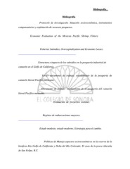 Bibliografía... Bibliografía Ángel, H., (2002). Protocolo de investigación. Situación socioeconómica, instrumentos compensatorios y explotación de recursos pesqueros. Mímeo. Archivo personal. Anónimo. Economic Evaluation of the Mexican Pacific Shrimp Fishery. Fotocopias. Archivo personal. Arnason, R., (2001). Fisheries Subsidies, Overcapitalization and Economic Losses. En http://www.pbs.port.ac.uk/econ/cemare/M44/M44_3.pdf Ayala, G., (2001). Estructura e impacto de los subsidios en la pesquería industrial de camarón en el Golfo de California. Tesis de maestría. El Colegio de Sonora. Cabrera, H., (2002). Tercer documento de trabajo: escalamiento de la pesquería de camarón litoral Pacifico mexicano. Mímeo. Gobierno del Estado de Sonora.. __________, (2002). Documento de trabajo: escalamiento de la pesquería del camarón litoral Pacifico mexicano. Mímeo. Gobierno del Estado de Sonora.. Cohen E. y Franco R., (2000). Evaluación de proyectos sociales. México. Siglo XXI editores. Quinta edición. CONAPESCA, (2003). Registro de embarcaciones mayores. En http://www.sagarpa.gob.mx/conapesca/ordenamiento/notas.htm Crozier, M., (1989). Estado modesto, estado moderno. Estrategia para el cambio. México. Fondo de Cultura Económica. Segunda edición. De la Cruz, F.J., (2002). Políticas de Manejo aspectos socioeconómicos en la reserva de la biosfera Alto Golfo de California y Delta del Río Colorado: El caso de la pesca ribereña de San Felipe, B.C. Tesis de maestría. El Colegio de la Frontera Norte. 91