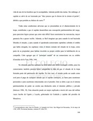 vida de uno de los hombres que lo acompañaba. Además perdió dos mulas. Sin embargo, el capitán se salvó de ser lesionado por “diez jarazos que le dieron de la cintura al pecho”, 98 debido a que portaba su chaleco de cuero. Todas estas condiciones adversas que se presentaban en el abastecimiento de la tropa, contribuían a que el capitán desarrollara una concepción patrimonialista del cargo, pues pareciera lógico pensar que entre más difícil fuera suministrar las mercancías, mayor ganancia iba a querer recibir. Además, es fácil imaginar que para cuando la real hacienda liberaba el situado, y para cuando el apoderado-comerciante capitalino cobraba el crédito que había otorgado, los capitanes veían el dinero restante del situado de la tropa, como parte de su propiedad, pues habían invertido su propio crédito para la habilitación de su compañía. Cabe agregar que el “principal caudal” de un comerciante era su crédito (González de la Vara 1996, 144). No obstante, para los capitanes no debe haber sido difícil conseguir crédito, pues los comerciantes también parecen haber compartido la idea de que el situado de la tropa formaba parte del patrimonio del capitán. En este caso, el situado podía ser usado como aval para el pago de cualquier adeudo que el capitán contrajera, ya fuera para cuestiones personales o para cuestiones relacionadas con el presidio. Esto se debe a que en el sistema patrimonialista de poder no existía una distinción entre el dominio público y privado (Imízcoz 1996, 19). Esta situación puede ser mejor explicada a través del caso del militar vasco Jacobo de Ugarte y Loyola, gobernador de Coahuila y capitán del presidio de Monclova. 98 Correspondencia entre Juan de Pineda y el marqués de Croix. San Miguel de Horcasitas, 16 de mayo de 1768. AGN. Provincias Internas, volumen 47, folio 353. 116