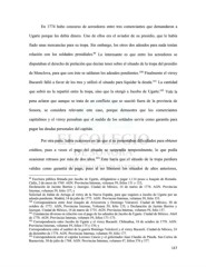 En 1774 hubo concurso de acreedores entre tres comerciantes que demandaron a Ugarte porque les debía dinero. Uno de ellos era el aviador de su presidio, que le había fiado unas mercancías para su tropa. Sin embargo, los otros dos adeudos para nada tenían 99 relación con los soldados presidiales. Lo interesante es que entre los acreedores se disputaban el derecho de prelación que decían tener sobre el situado de la tropa del presidio de Monclova, para que con éste se saldaran los adeudos pendientes. 100 Finalmente el virrey Bucareli falló a favor de los tres y utilizó el situado para liquidar la deuda. 101 La cantidad que sobró no la repartió entre la tropa, sino que la otorgó a Jacobo de Ugarte. 102 Vale la pena aclarar que aunque se trata de un conflicto que se suscitó fuera de la provincia de Sonora, se considera relevante este caso, porque demuestra que los comerciantes capitalinos y el virrey pensaban que el sueldo de los soldados servía como garantía para pagar las deudas personales del capitán. Por otra parte, había ocasiones en las que sí se presentaban dificultades para obtener créditos, pues a veces el pago del situado se suspendía temporalmente, lo que podía ocasionar retrasos por más de dos años. 103 Esto hacía que el situado de la tropa perdiera validez como garantía de pago, pues al no liberarse los situados de años anteriores, 99 Escritura pública firmada por Jacobo de Ugarte, obligándose a pagar 1,114 pesos a Joaquín de Romaña. Cádiz, 2 de enero de 1769. AGN. Provincias Internas, volumen 59, folios 131 y 132; Declaración de Jacinto Barrios y Jauregui. Ciudad de México, 14 de marzo de 1774. AGN. Provincias Internas, volumen 59, folio 137; y Solicitud de Julián de Arriaga al virrey de la Nueva España, para que requiera a Jacobo de Ugarte por un adeudo pendiente. Madrid, 14 de julio de 1773. AGN. Provincias Internas, volumen 59, folio 153. 100 Correspondencia entre José Joaquín de Arizcorreta y Domingo Valcarcel. Ciudad de México, 30 de octubre de 1773. AGN, Provincias Internas, Volumen 59, folio 135; y Declaración de Jacinto Barrios y Jauregui. Ciudad de México, 14 de marzo de 1774. AGN. Provincias Internas, volumen 59, folio 137. 101 Constancias diversas en relación con el pago de los adeudos de Jacobo de Ugarte. Ciudad de México. Abril de 1778. AGN. Provincias Internas, volumen 59, folios 171-173. 102 Correspondencia entre Jacobo de Ugarte y el virrey Bucareli. Chihuahua, 18 de octubre de 1778. AGN. Provincias Internas, volumen 59, folios 175 y 176; y Correspondencia entre el auditor de la guerra Domingo Valcárcel y el virrey Bucareli. Ciudad de México, 24 de diciembre de 1778. AGN. Provincias Internas, volumen 59, folio 177. 103 Correspondencia entre el capitán Lorenzo Cancio y el gobernador Juan Claudio de Pineda. San Carlos de Buenavista. 30 de julio de 1768. AGN. Provincias Internas, volumen 47, folios 376 y 377. 117
