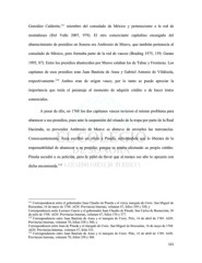 González Calderón, 111 miembro del consulado de México y perteneciente a la red de montañeses (Del Valle 2007, 979). El otro comerciante capitalino encargado del abastecimiento de presidios en Sonora era Ambrosio de Meave, que también pertenecía al consulado de México, pero formaba parte de la red de vascos (Brading 1975, 159; Garate 1995, 87). Entre los presidios abastecidos por Meave estaban los de Tubac y Fronteras. Los capitanes de esos presidios eran Juan Bautista de Anza y Gabriel Antonio de Vildósola, respectivamente. 112 Ambos eran de origen vasco, por lo tanto se puede apreciar la importancia que tenía el paisanaje al momento de adquirir crédito o de hacer tratos comerciales. A pesar de ello, en 1768 los dos capitanes vascos tuvieron el mismo problema para abastecer a sus presidios, pues ante la suspensión del situado de la tropa por parte de la Real Hacienda, su proveedor Ambrosio de Meave se abstuvo de enviarles las mercancías. Consecuentemente, Anza escribió un oficio a Pineda, solicitándole que lo liberara de la responsabilidad de abastecer a su presidio, porque se estaba afectando su propio crédito. Pineda accedió a su petición, pero le pidió de favor que al menos ese año lo apoyara con dicha encomienda. 113 111 Correspondencia entre el gobernador Juan Claudio de Pineda y el virrey marqués de Croix. San Miguel de Horcasitas, 16 de mayo de 1768. AGN. Provincias Internas, volumen 47, folios 349 y 350; y Correspondencia entre Lorenzo Cancio y el gobernador Juan Claudio de Pineda. San Carlos de Buenavista, 30 de julio de 1768. AGN. Provincias Internas, volumen 47, folios 376 y 377. 112 Correspondencia entre Juan Bautista de Anza y el marqués de Croix. Pitic, 16 de abril de 1769. AGN. Provincias Internas, volumen 70, folios 358 y 360; y Correspondencia entre Juan de Pineda y el marqués de Croix. San Miguel de Horcasitas, 16 de mayo de 1768. AGN. Provincias Internas, volumen 47, folio 353. 113 Correspondencia entre Juan Bautista de Anza y el marqués de Croix. Pitic, 16 de abril de 1769. AGN. Provincias Internas, volumen 70, folios 358 y 360. 121