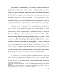 Otro indicio de la presencia que tuvo la red familiar en el ascenso de Vildósola, es que la familia Tato formaba parte de la élite regional y tenía poder político, pues Manuel Esteban Tato, padre de María Rosa, ocupó cargos públicos en el gobierno local (Herrera 2006, 209-210). Por otra parte, es muy posible que José Antonio supiera que al casarse con María Rosa se impulsaría su carrera militar, debido a la cercanía que tendría con Juan Bautista. Sin embargo, la red de parentesco que le posibilitó el ascenso, sería la fuente de los problemas profesionales a los que se tendría que enfrentar el capitán en su nuevo cargo. En octubre de 1772 y en enero de 1773, el gobernador Mateo Sastre escribió dos oficios al virrey. En ellos informaba a Bucareli sobre el mal desempeño del capitán Vildósola, pues lo acusaba de insubordinación e incompetencia (Ibid, 218), y sugería que fuera removido del cargo. Los motivos particulares para su destitución eran: “que los Indios Apaches le [habían] quitado en medio del dia una grande porción de Cavallada y toda su recua, sin haver podido restaurar la pressa ni hacer progreso alguno no obstante se hallase con dobles fuerzas que las que [tenían] los demás capitanes”; 125 también hizo mención sobre “el mal uso que [hacía] de la tropa de su mando. Exercitandola en oficios serviles”; y además señaló que los obligaba a recibir caballos inútiles. 126 Los informes del gobernador en contra del capitán tomaron gran relevancia, a pesar del fallecimiento de Sastre en marzo de 1773, pues posteriormente, el virrey Bucareli decidió actuar sobre ellos (Ibid). El 21 de abril de 1773, mientras Bernardo Urrea suplía interinamente el gobierno de Sonora, en espera a que llegara Francisco Antonio Crespo a ocupar la gobernación, recibió un oficio del virrey. Por ese medio, Bucareli le informó que había dado instrucción al 125 El presidio de Terrenate tenía agregada a la tropa de la segunda compañía volante de Sonora (Navarro 1964, 251). 126 Correspondencia entre el virrey Bucareli y el gobernador interino Bernardo Urrea. Ciudad de México, 21 de abril de 1773. AGN. Provincias Internas, volumen 96, folios 159-160. 129