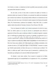 José Antonio y su mujer, y se dejarán por un lado las posibles causas personales y privadas que podrían haber detonado el conflicto. Por otro lado, en torno al tema sobre la sucesión del capitán en Terrenate, es pertinente señalar que el puesto de Vildósola, en un principio fue suplido provisionalmente por el teniente José Lumbreras. Este personaje también influenció en la destitución de José Antonio, pues entre otras cosas, lo incriminó de malos manejos de las finanzas del presidio (Ibid, 219). Posteriormente, Lumbreras fue trasladado a Tubac (Ibid, 220) y se nombró capitán vitalicio del presidio de Terrenate a Francisco Tovar (Navarro 1964, 260). Tovar era originario de Castilla, y por lo tanto no pertenecía a la red de los vascos. Entre sus méritos aparece en su hoja de servicios su participación para reforzar la guarnición de Puerto Rico, pues se señala que colaboró “en calidad de Ingeniero voluntario para la fortificación de aquella plaza sin percivir ni pretender la gratificación que se concede en iguales casos”. Además, en el mismo documento se menciona que estando en el cargo de capitán del presidio de La Bahía, formó “una población de treinta familias en el Río de las Nueces para contener a los Yndios apaches que se hallaban arranchados en las cercanías de dicho rio, sin erogar gasto alguno a la Real Hacienda”. Asimismo se asienta que “fortificó aquel presidio con barias obras que en el se hicieron para su defensa”. Por último, se señala que suplió “cuatro mil pesos para la manutención y conducción de los Nacionales que naufragaron en la costa de la Bahía del Espíritu Santo”. 147 No obstante a tener tantos méritos, Tovar renunció al comando de La Bahía, argumentando algún tipo de incompatibilidad con el reglamento de 1729, y sus problemas 147 Hoja de servicios del capitán Francisco Tovar en 1775. AGN. Correspondencia Virreyes 2da serie, volumen 14 folios 318-326. 137