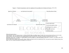 Figura 3.- Vínculo de parentesco entre los capitanes de los presidios de la frontera de Sonora, 1771-1774 Elaboración propia en base a: Garate, Donald T. 1996. The Vildósola Family: A Sonoran Political, Military, and Ethnic Legacy. Colonial Latin American Historical Review V (4): 413-420; Garate, Donald T. 2003. Juan Bautista de Anza. Basque Explorer in the New World 1693-1740. Reno: University of Nevada Press. Pags. 152-154; Hausberger, Bernd. 2007. La conquista del empleo público en la Nueva España. El comerciante gaditano Tomás Ruiz de Apodaca y sus amigos, siglo XVIII. Historia Mexicana LVI (3): 756-757; y Herrera, Carlos. 2006. Infidelity and the presidio captain: Adultery and Honor in the lives of María Rosa Tato y Anza and José Antonio Vildósola, Sonora, New Spain, 1769-1783. Journal of the History of sexuality, XV (2): 205-212. 144