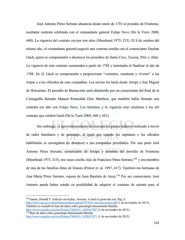 José Antonio Pérez Serrano abastecía desde enero de 1783 al presidio de Fronteras, mediante contrata celebrada con el comandante general Felipe Neve (De la Torre 2008, 640). La vigencia del contrato era por tres años (Moorhead 1975, 215). El 8 de octubre del mismo año, el comandante general negoció una contrata similar con el comerciante Esteban Gach, quien se comprometió a abastecer los presidios de Santa Cruz, Tucson, Pitic y Altar. La vigencia de este contrato comenzaba a partir de 1784 y terminaba al finalizar el año de 1788. En él, Gach se comprometía a proporcionar “vestuario, monturas y víveres” a las tropas y a los oficiales de esas compañías. Los envíos los haría desde Arizpe y San Miguel de Horcasitas. El presidio de Buenavista sería abastecido por un comerciante del Real de la Cieneguilla llamado Manuel Romualdo Diez Martínez, que también había firmado una contrata ese año con Felipe Neve. Los términos y la vigencia eran similares a los del contrato que celebró Gach (De la Torre 2008, 640 y 641). Sin embargo, el aprovisionamiento de mercancías parece haberse realizado a través de redes familiares y de paisanaje, al igual que cuando los capitanes o los oficiales habilitados se encargaban de abastecer a sus compañías presidiales. Por una parte José Antonio Pérez Serrano, comerciante de Arizpe y asentista del presidio de Fronteras (Moorhead 1975, 215), era vasco criollo, hijo de Francisco Pérez Serrano, 169 y era miembro de una de las familias élites de Sonora (Polzer et. al. 1997, 417). También era hermano de Ana María Pérez Serrano, esposa de Juan Bautista de Anza. 170 Por ser comerciante, José Antonio puede haber estado en posibilidad de adquirir el contrato de asiento para el 169 Garate, Donald T. (artículo sin fecha). Arizona. A land of good oak tres. Pag. 8. http://www.nps.gov/tuma/historyculture/upload/TUMA-Arizona-article.pdf (1 de noviembre de 2013). También se consultó la base de datos sobre genealogía denominada Mundia. http://www.mundia.com/mx/Person/7840451/-1028437807 (1 de noviembre de 2013). 170 Base de datos sobre genealogía denominada Mundia. http://www.mundia.com/mx/Person/7840451/-1028437671 (1 de noviembre de 2013). 153