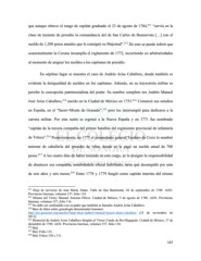 que aunque obtuvo el rango de capitán graduado el 23 de agosto de 1784, 211 “servía en la clase de teniente de presidio la comandancia del de San Carlos de Buenavista […] con el sueldo de 1,200 pesos anuales que le consignó su Majestad”. 212 De esto se puede inferir que ocasionalmente la Corona incumplía el reglamento de 1772, incurriendo en arbitrariedades al momento de asignar los sueldos a los capitanes de presidio. En séptimo lugar se muestra el caso de Andrés Arias Caballero, donde también es evidente la desigualdad de sueldos en los capitanes. Además, en su trayectoria militar se percibe la concepción patrimonialista del poder. Su nombre completo era Andrés Manuel José Arias Caballero, 213 nacido en la Ciudad de México en 1753. 214 Comenzó sus estudios en España, en el “Sacro=Monte de Granada”, 215 pero los interrumpió para dedicarse a la carrera militar. Por esta razón se regresó a la Nueva España y en 1771 fue nombrado “capitán de la tercera compañía del primer batallón del regimiento provincial de infantería de Toluca”. 216 Posteriormente, en 1777 el comandante general Teodoro de Croix lo nombró teniente de caballería del presidio de Altar, donde se le pagó un sueldo anual de 700 pesos. 217 A los cuatro días de haber iniciado en este cargo, se le designó la responsabilidad de abastecer esa compañía, nombrándole oficial habilitado, tarea que desempeñó por más de seis años y seis meses. 218 Entre 1778 y 1779 fungió como capitán interino del mismo 211 Hoja de servicios de José María Abate. Valle de San Bartolomé, 28 de septiembre de 1788. AGN. Provincias Internas, volumen 157, folio 118. 212 Minuta del Virrey Manuel Antonio Flórez. Ciudad de México, 5 de agosto de 1788. AGN. Provincias Internas, volumen 157, folio 116. 213 No debe ser confundido con su padre que también se llamaba Andrés Arias Caballero. 214 Base de datos sobre genealogía denominada Geneanet. http://gw.geneanet.org/sanchiz?lang=de;p=andres+manuel+jose;n=arias+caballero (23 de noviembre de 2013). 215 Memorial de Andrés Arias Caballero dirigido al Virrey Conde de Revillagigedo. Ciudad de México, 17 de diciembre de 1789. AGN. Provincias Internas, volumen 157, folio 130. 216 Ibid. 217 Ibid. Folio 133. 218 Ibid. Folios 130 y 131. 167